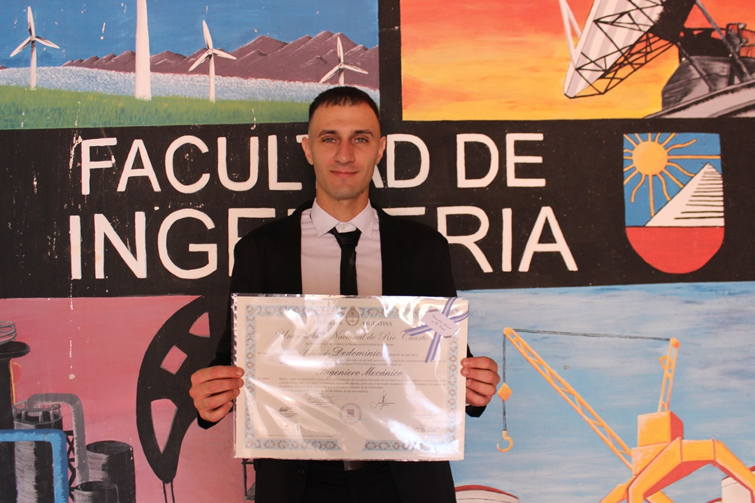 Andrés Crespo se despide de las aulas de la Universidad Nacional de Río Cuarto con su título de Ingeniero Electricista en mano y un conjunto de experiencias que quedarán siempre en su memoria.
